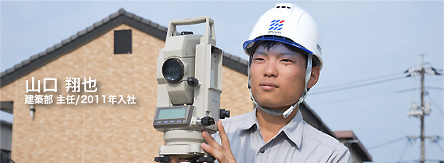 柳井で育った私としては、地元に貢献しようなどと高い目標はなかったのですが、地元の会社に勤めて一人前になるという志を持っていました。入社して6 年目になりますが、これまでに学校や公共施設そして住宅など多数の現場に携わり、貴重な経験を積まさせていただきました。細身の私でもヘルメットをかぶると身の引き締まる思いがします。高校の大規模改築の現場では、現場の所長さんと相談しながら、工期の短縮について協力会社の皆さんと議論したことが頭に残っています。この時コミュニケーションの大切さを知りました。当社の技術力は定評のあるところ、でもそれを私たちが引き継いでいかなければ意味がありません。大きな仕事をやりきることが目標ですが、そのためにはもっともっと勉強して、経験を積まねばならないと思っています。